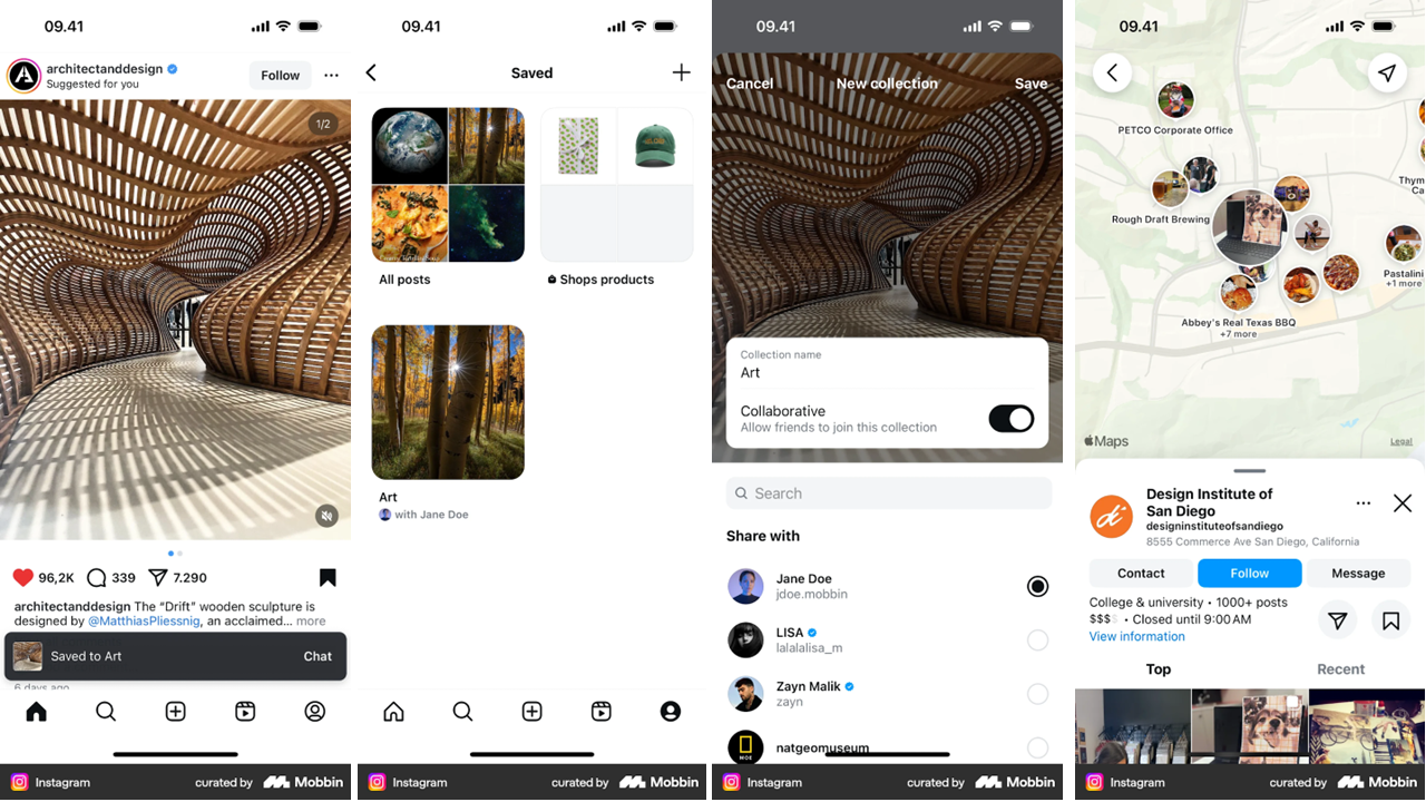 With a clear understanding of user needs and the experience map in place, I moved into rapid ideation through sketching. I began by analyzing related apps—like Instagram, Corner, Mozi, and Hypelist—through lightning demos to identify successful patterns in location discovery, social sharing, and itinerary planning. These references helped me understand how other products approached filtering by vibe, saving spots, and navigating maps. Below are some notable screenshots and reflections about competitor products researched for GramCity’s new feature.